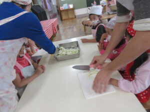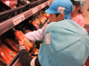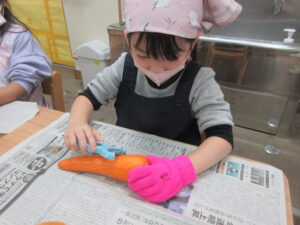今年もおいしいお芋がたくさんとれました!子どもたちが掘ったさつまいもでカレーパーティーをしました! 2025年10月31日 shimizugaoka_staff 包丁を使う時は、ネコさんの手で 人参の皮むきは任せてね お買い物はさくら組が・・